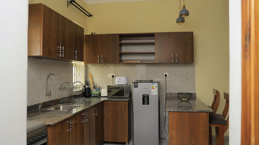 Merinia Properties presents this brand-new, fully furnished 1 bedroom apartment available for short-term daily rental in the quiet and secure neighborhood of Muyenga, along Kakande Close, approximately 1 km from the main road.
