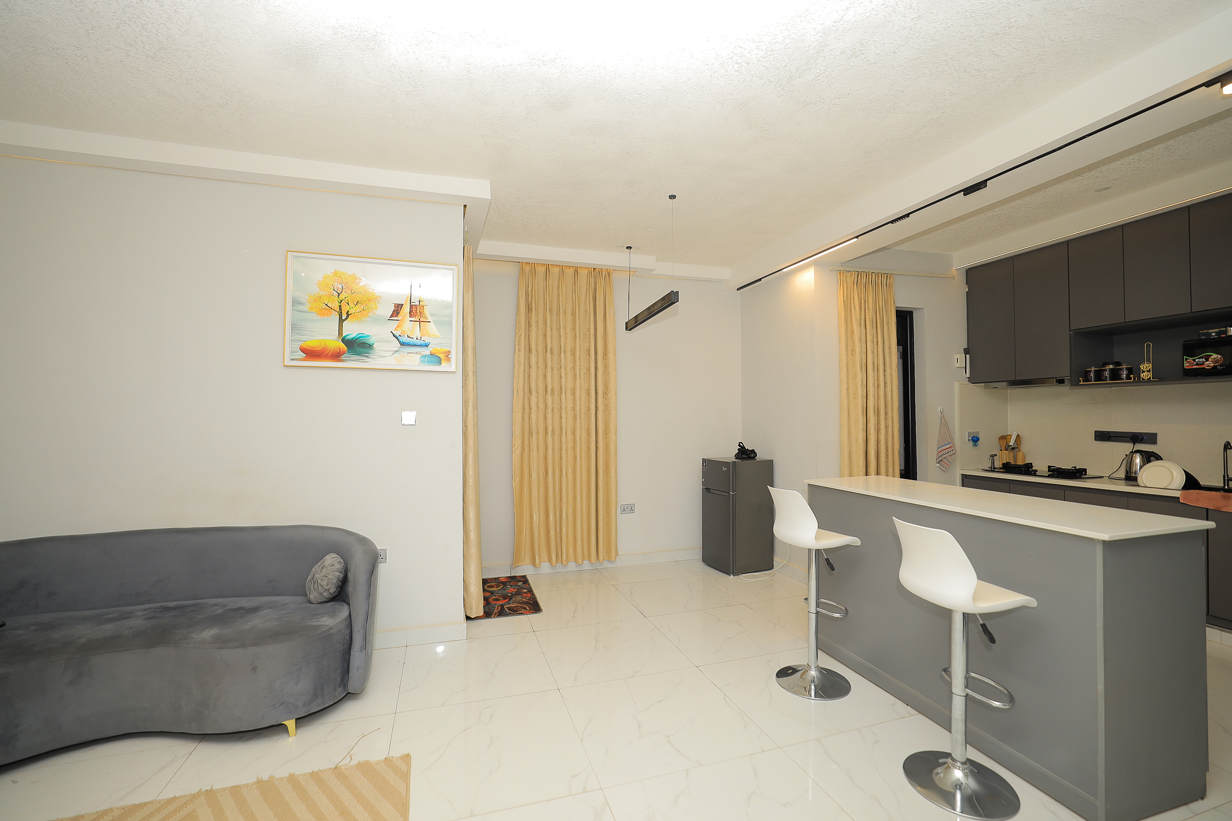Merinia Properties presents this newly built furnished 1 bedroom serviced apartment located along Baha’i Road in Kisasi, just 5 meters from the main road for easy accessibility.